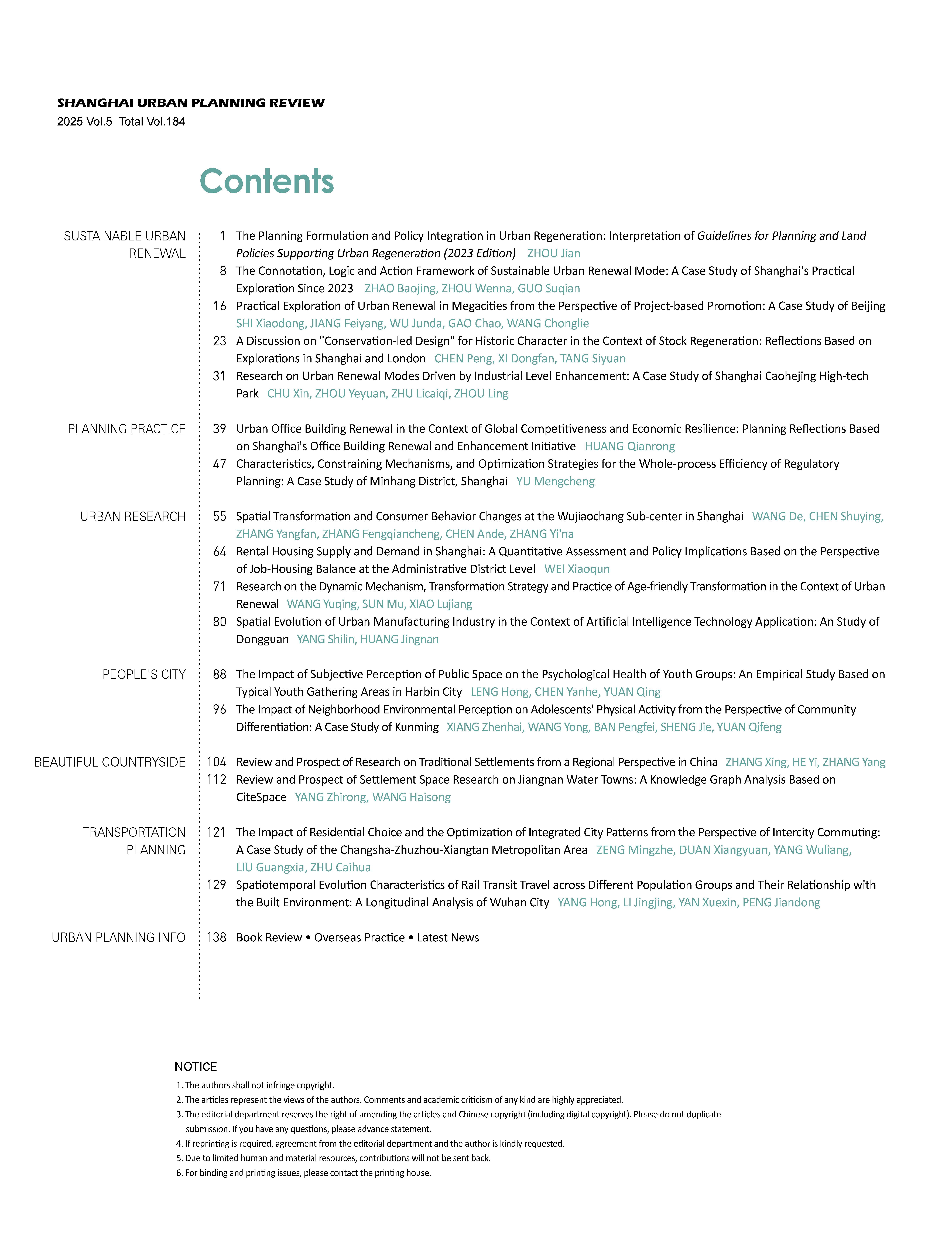 Abstract: This paper systematically examines the full-cycle characteristics of sustainable urban regeneration, Shanghai's practical framework, and optimization pathways. It proposes that sustainable urban regeneration models can be expanded into a three-dimensional framework system encompassing concepts, institutions, and planning based on their inherent logic. The conceptual dimension should shift value perspectives to balance urban economic development with the safeguarding of people's livelihoods. The institutional dimension should reconstruct a sustainable policy environment for regeneration and establish a multi-stakeholder work organization. The planning dimension should prioritize the transformation of the regeneration planning system and the innovation of multi-disciplinary collaborative technical methods. Drawing on Shanghai's practical experience, the paper summarizes specific measures in organizational mechanism building, planning methodology transformation, policy and regulation innovation, and specialized initiatives. It further suggests that Shanghai's future urban regeneration efforts need to better balance diverse interests, enhance social inclusivity, strengthen resource coordination, and advance digital governance, thereby serving as a model for sustainable regeneration in megacities and large cities.